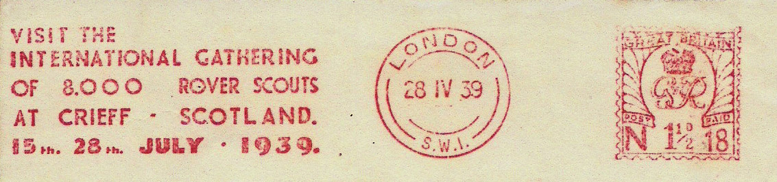 Crieff Scotland 15-28 July 1939". Our President Peter Duck and I have never known that this meter slogan